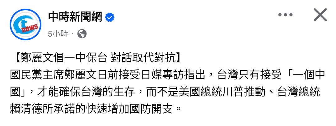 請鄭主席回答一下,一中是哪個中國? 我倒是想知道除了蔡丁貴跟基進黨以外,不接受台灣屬於中華民國的有幾個?