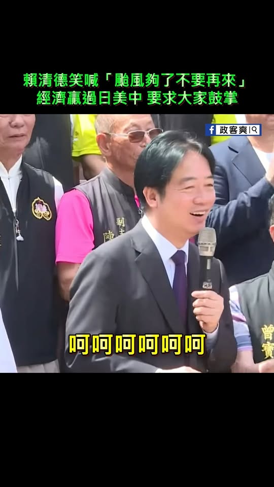 賴清德笑喊「颱風夠了不要再來」,經濟贏過日美中「要求大家鼓掌」! 轉載來源
