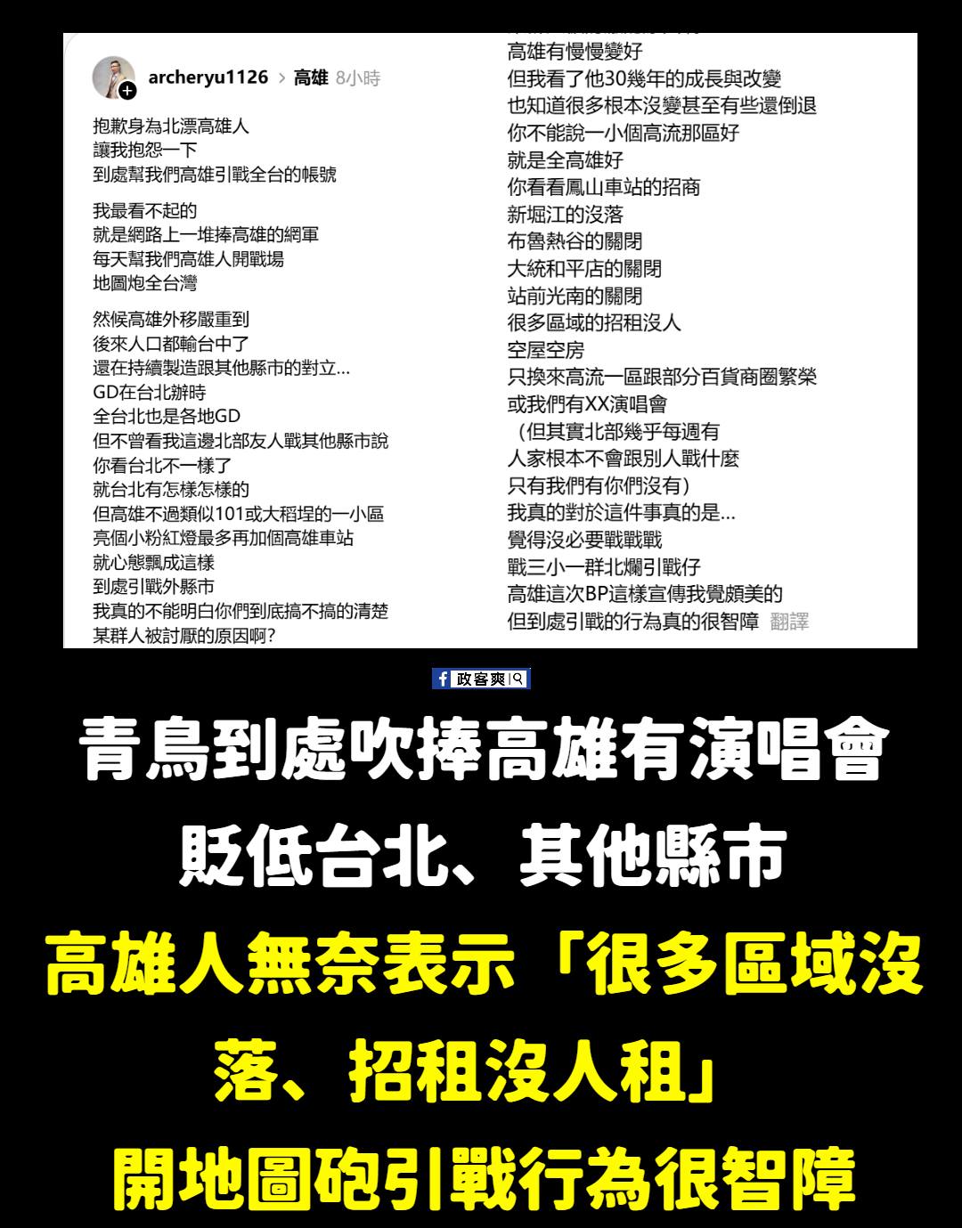 台北也經常有演唱會,但很少看到台北人說「你看我們台北都有,你們都沒有!」