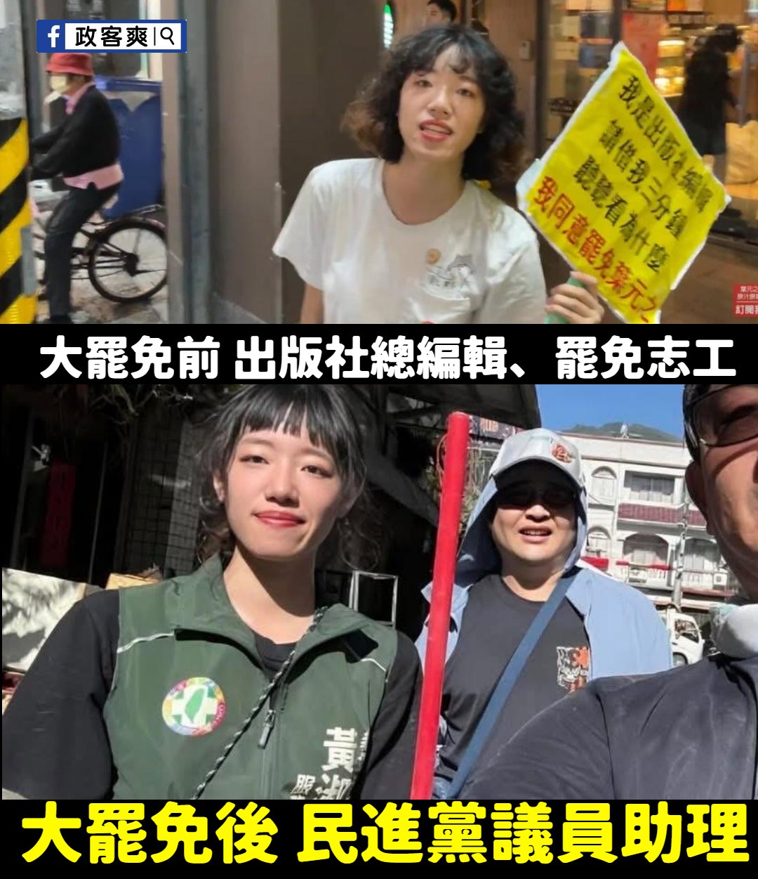 這是什麼綠色黨國演員訓練班嗎? 一下總編輯兼罷免志工、一下轉身成為民進黨議員助理 百工百業挺大罷免,阿百工百業都是自己人哦,難怪最後投出來的票這麼慘 也難怪賴清德整天吹噓台灣失業率很低,為黨奉獻都會有工作的 轉載來源