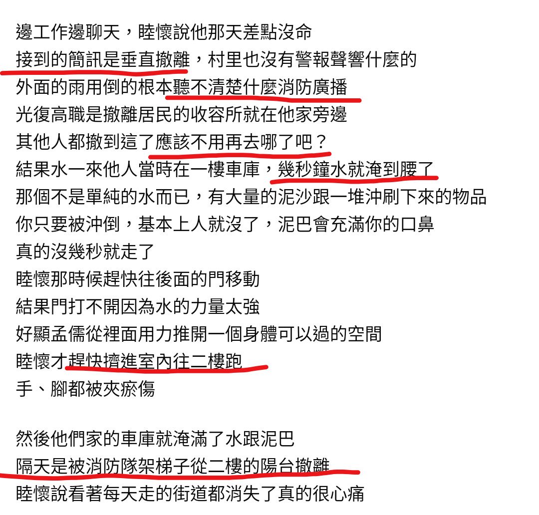 不管事前規劃如何周全、中央請了幾個團隊研究、地方通知撤離多少次,只要遇到「人」,大家都有各自的意志,不會按照政府預期的方式做事,根本防不了。這時候去怪地方沒有通知?還是中央不該建議垂直撤離?還是這樣那樣,說真的都沒有意義,只能依照這次的狀況再去調整通知跟避難的方式,亡羊補牢而已。