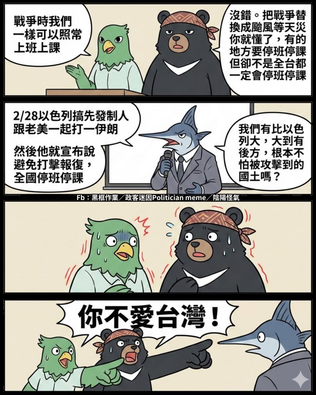 青鳥萬能的回答方式 先說「我愛台灣」 然後下面三個挑一個指著對方說 1.你中共銅鹿人不可信! 2.你不愛台灣! 3.藍白… 黑特民進黨 2026-03-02 黑特 留下回應 0 點擊數 青鳥萬能的回答方式 先說「我愛台灣」 然後下面三個挑一個指著對方說 1.你中共銅鹿人不可信! 2.你不愛台灣! 3.藍白賣台啦! 來源摸我 分享文章 Facebook Twitter