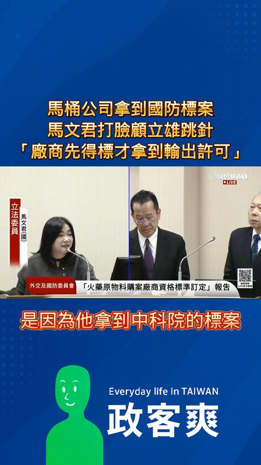 馬桶公司拿到國防標案,馬文君打臉顧立雄跳針「廠商先得標才拿輸出許可」 轉載來源