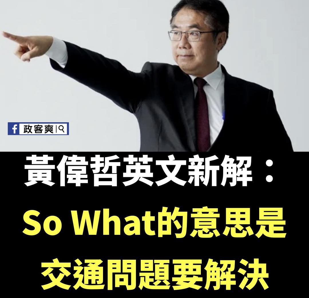 黃偉哲改變了世界英文解釋 原來So What不是那又怎樣 以後老闆或主管問你工作情況,就可以回「So What?」 黑特民進黨 2026-04-04 黑特 留下回應 2 點擊數 黃偉哲改變了世界英文解釋 原來So What不是那又怎樣 以後老闆或主管問你工作情況,就可以回「So What?」 轉載來源 分享文章 Facebook Twitter