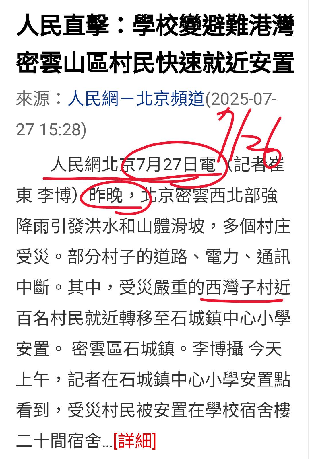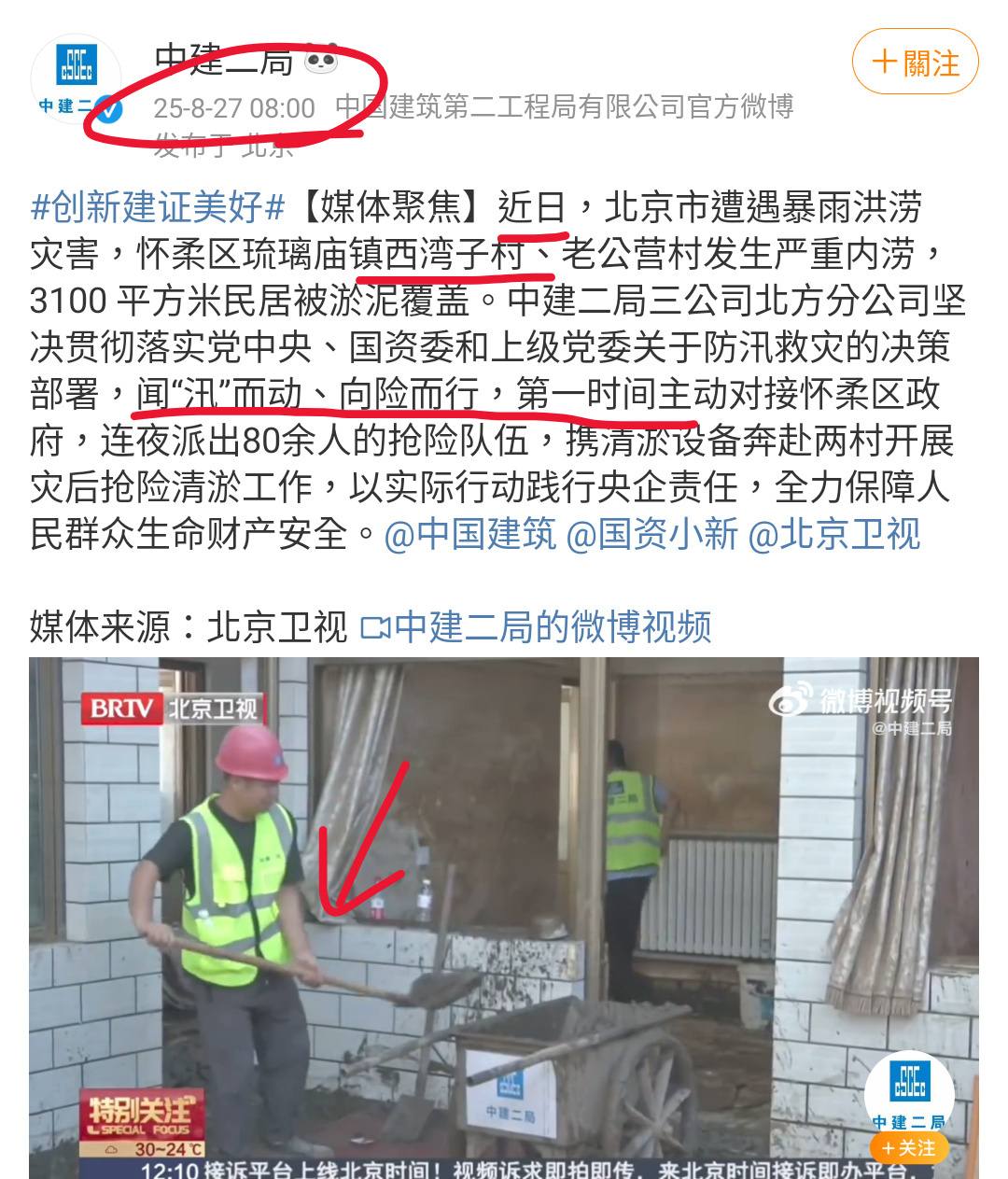 7/26日,北平市郊遭遇暴雨引發山洪,沖毀數個村莊,共產黨聞訊而動,#終於在一個月後,8/27日派出中建二局員工至受災村莊協助居民挖土,雖然是用「低科技原始人」的工具:鏟子,來進行開挖,但是這令人驚嘆的速度還是值得我們學習,尤其是共慘党知名的高效率,是非常值得台南市來借鑒。