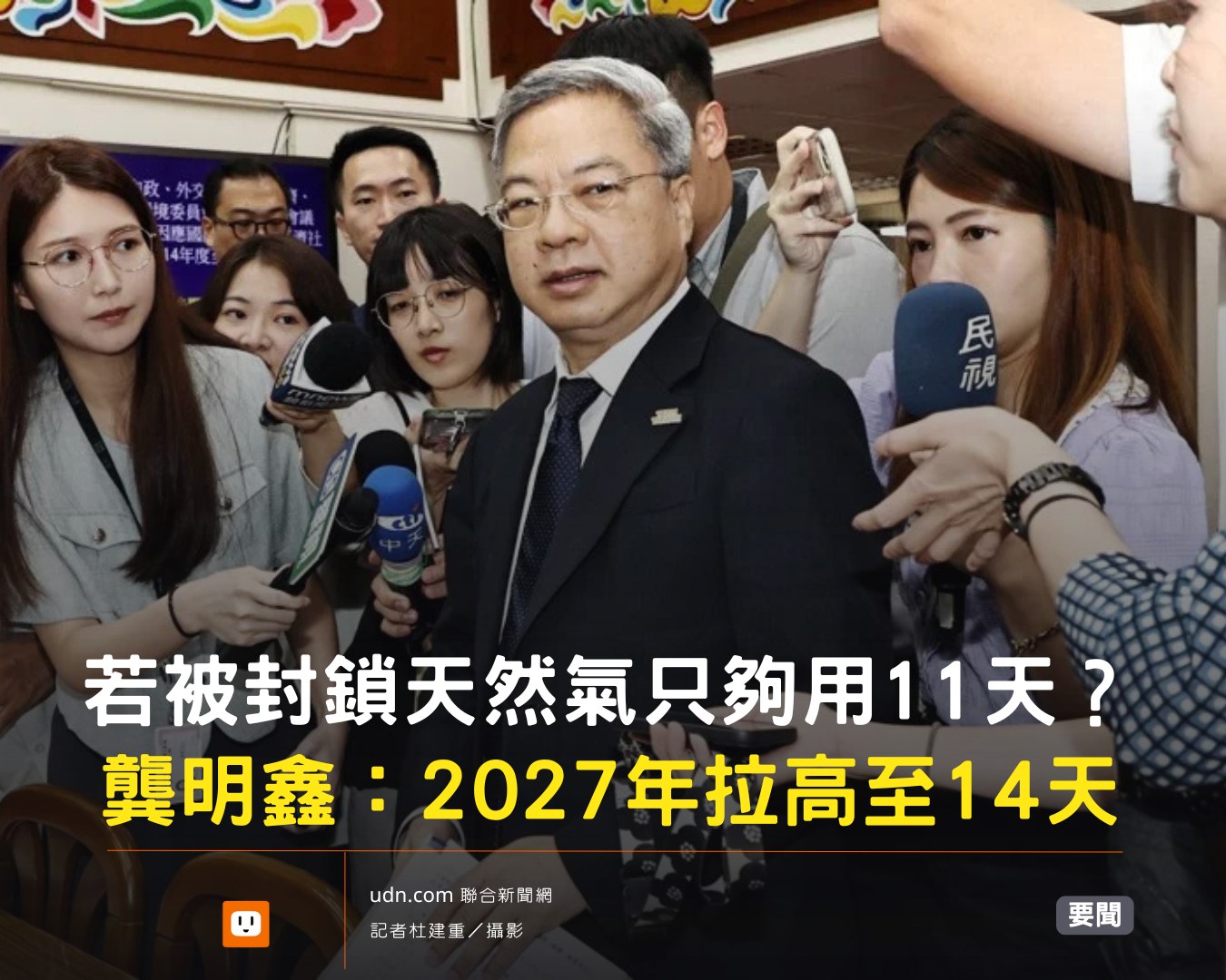 龔明鑫表示,希望先達成14天目標在來想其他。 【若被封鎖天然氣只夠用11天? 龔明鑫:2027年拉高至14天】