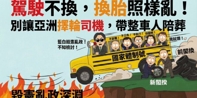 閱讀更多 »【民主的輪胎】-第二章 駕駛不換,換胎照樣亂 方向沒改,繼續衝懸崖 權力還是獨夫專斷,行政院長只是憲法的太監 別讓整車人 …