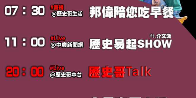閱讀更多 »⭐️10/23【歷史易起SHOW|今正午11:05開始直播】 ✅來賓:國際事務專家 介文汲 ⏩https://www.y …